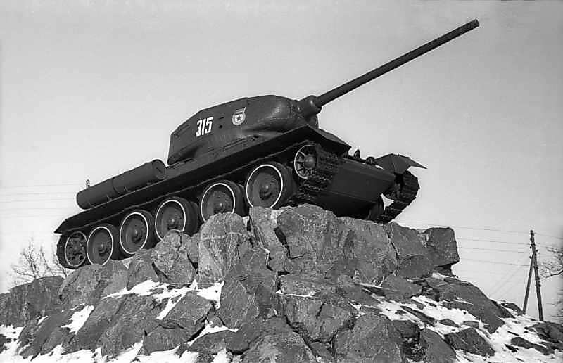 1977 р. Танк Т-34 Розмір зображення: 800:516 піксел 1977 р. 19 січня. Фото М.І.Жарких. Негатека, № A221-04. Вкладені елементи [2]