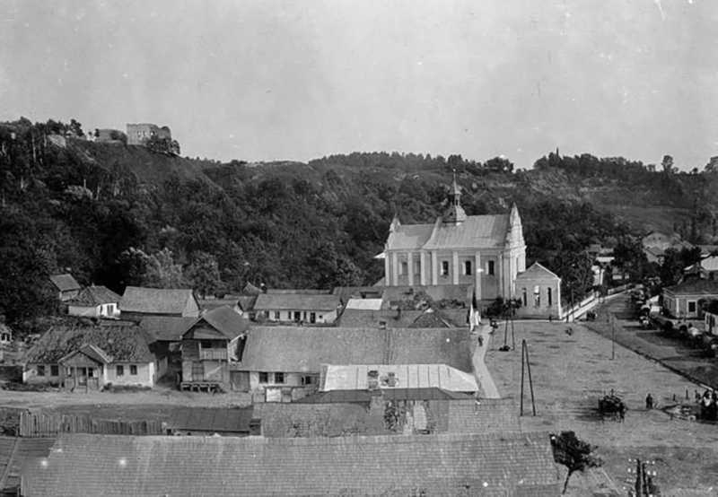 1916 р. (?) Площа з костелом на тлі замку (2)Розмір зображення: 800:554 піксел Фото 1914..1916 рр. опубліковано на сторінці «Мандрівка старим кордоном» 27.06.2021 р. |