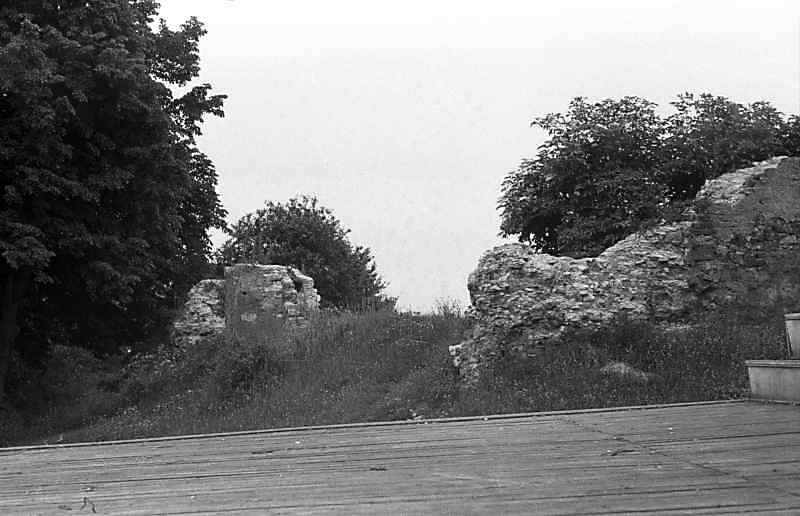 1988 р. Фрагменти чільного муру. Вигляд з північного заходу, з боку двораРозмір зображення: 800:516 піксел 1988 р. 11 червня. Фото М.І.Жарких. Негатека, № 382-13. |