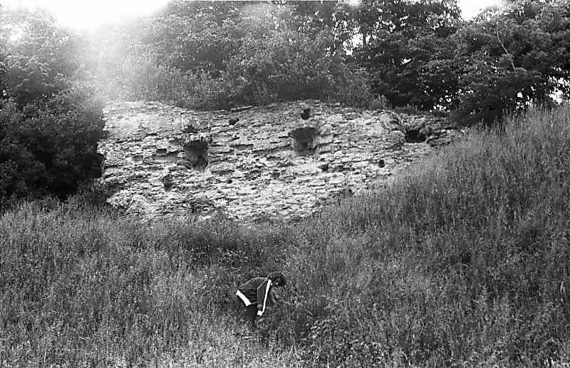 1988 р. Фрагмент чільного муру. Вигляд з півдня, з боку ровуРозмір зображення: 800:516 піксел 1988 р. 11 червня. Фото М.І.Жарких. Негатека, № 383-05. |
