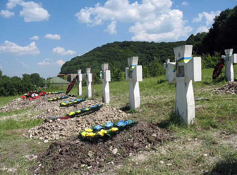 2010 р. Ряд поховань на тлі лісуРозмір зображення: 800:591 піксел Фото Зенона Боровця і Богдана Тхора, 18 липня 2010 р. |