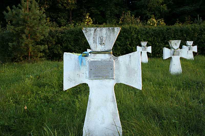 Напис: «Данилишин Дмитро сотник 39 полку дивізії «Галичина» 3.11.1905 – 20.07.1944 Розстріляний НКВД».