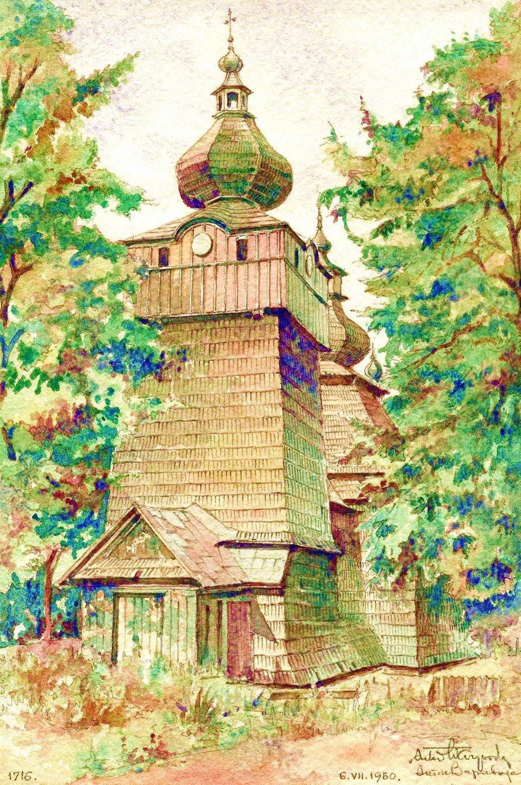 1716 Church, Han’chova (Hanczowa), Dukla, Poland. Southwestern view.