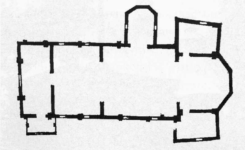 План церкви. За: Brykowski R. Dzieje budowlane drewnianej unickiej cerkwi w Hannie. // Ochrona zabytkow, 1987. N. 4. - S. 270.