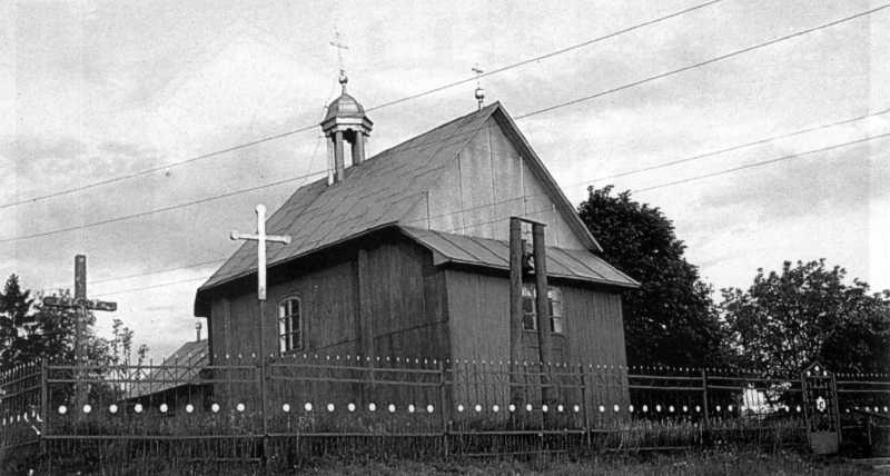 Церква (каплиця) збудована у 1883 році для новозаснованої дочірної парафії. Українці, виселені у 1946 р. повернулися у 1955 р. Каплиця стояла зачиненою з 1946 по 1989 р. і використовувалася на колгоспний склад. Дерев’яна, дводільна, безверха. До високої нави з ліхтарем на гребені даху, прилягає зі сходу вужчий вівтар, а з заходу – невеликий присінок.