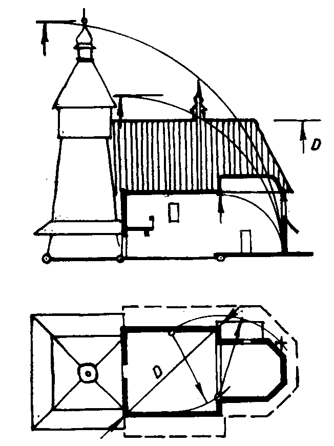 Будувались і церкви під спільним дахом однієї висоти та різної крутизни, в яких дахи при спільному гребені плавно обтікають контури зрубів (с. Гервартів, церква збудована у 1480 р., дзвіниця прибудована, ймовірно, в середині XVII ст. [Zaloziecky W. Gotische und Barocke Holzkirchen in den Karpatenlandern. – Wien, 1926. – P. 37 – 41; Vydra J. Lidove stavitelstvo na Slovensku. – Praha, 1925. – P. 169]) (с. 218).