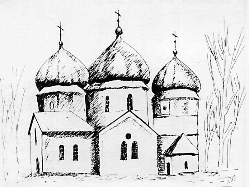 Загальний вигляд з позиції С2Розмір зображення: 800:602 піксел Гічва Вознесіння Христового 1905 Балигород Рисунок Р.Раделицького. Церква зруйнована. Джерело: Іванусів О. Церква в руїні. – St. Catharines, 1987, с. 320. |