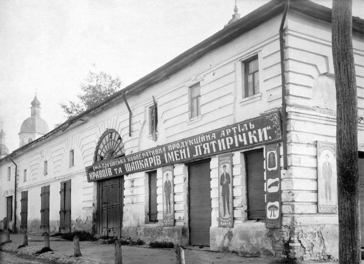 На розі – вивіска: «1-а Глухівська кооперативна продукційна артіль кравців та шапкарів імені п’ятирічки».