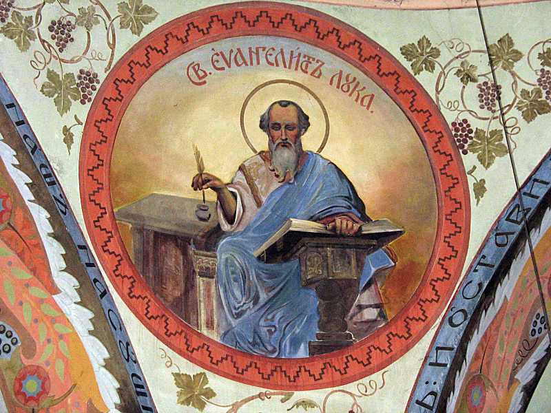 Євангеліст ЛукаРозмір зображення: 800:600 піксел Стінопис паруса верху над навою. Фото Зенона Боровця, 7 серпня 2006 р. |