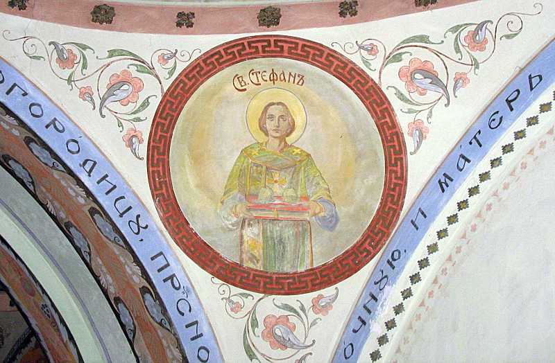 Св. Стефан Розмір зображення: 800:524 піксел Стінопис паруса бабинця. Фото Зенона Боровця, 7 серпня 2006 р. Вкладені елементи 2006-08-07Gly062a