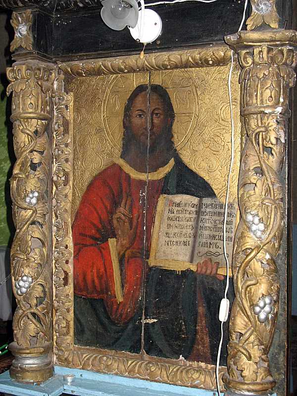 Ікона «Христос учитель» (до реставрації) Розмір зображення: 600:800 піксел Фото Зенона Боровця, 7 серпня 2006 р. Вкладені елементи 2009 р. Вигляд після реставрації 2006-08-07Gly098a