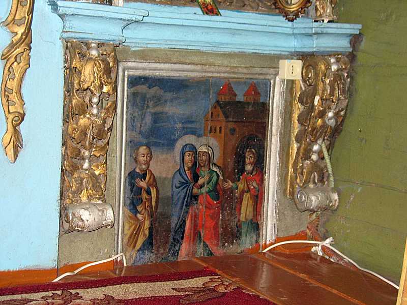 Ікона «Зустріч Марії та Єлизавети»Розмір зображення: 800:600 піксел Пределла під іконою «Вознесіння Марії» у намісному ряді. Фото Зенона Боровця, 7 серпня 2006 р. |