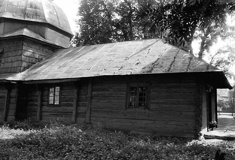 1990 р. Бабинець і прибудова. Вигляд з півночіРозмір зображення: 800:547 піксел 1990 р. 15 серпня. Фото М.І.Жарких. Негатека, № 661-13. |