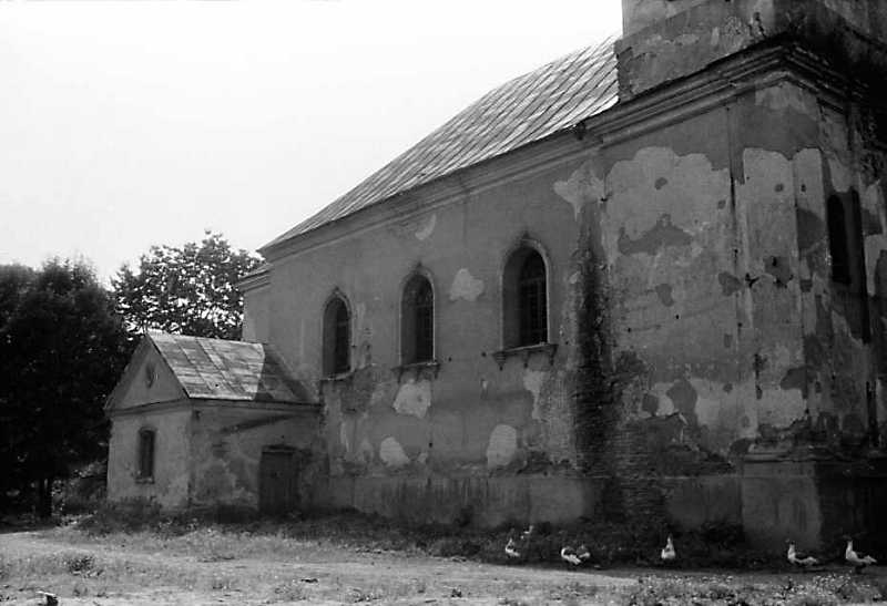 1990 р. Бічний фасад. Вигляд з позиції А4 (з північного сходу)Розмір зображення: 800:547 піксел 1990 р. 15 серпня. Фото М.І.Жарких. Негатека, № 660-34. |
