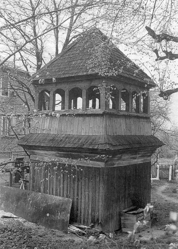 1992 р. Загальний вигляд дзвіниціРозмір зображення: 574:800 піксел Світлина І. Синкальського 1992 р. Джерело: Слободян В. Церкви України: Перемиська єпархія. – Льв.: 1998 р., с. 173. |