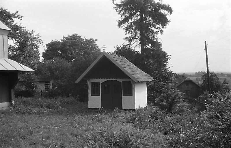1989 р. Каплиця. Вигляд з південного заходуРозмір зображення: 800:514 піксел 1989 р. 6 липня. Фото М.І.Жарких. Негатека, № 520-11. |