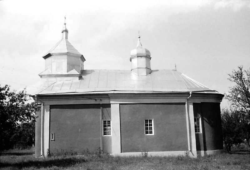 Церква Трійці: орієнтація вівтаря 90°, в центрі села на головній вулиці (А4), головний вхід в позиції С3. Спостереження М.І.Жарких 21.07.1991 р.