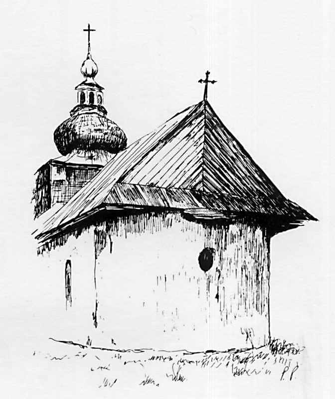 Загальний вигляд з позиції А2Розмір зображення: 672:800 піксел Билична Св. Архангела Михаїла 1792 Грибів Рисунок Р.Раделицького. Церква зруйнована. [Це помилка] Джерело: Іванусів О. Церква в руїні. – St. Catharines, 1987, с. 306. |