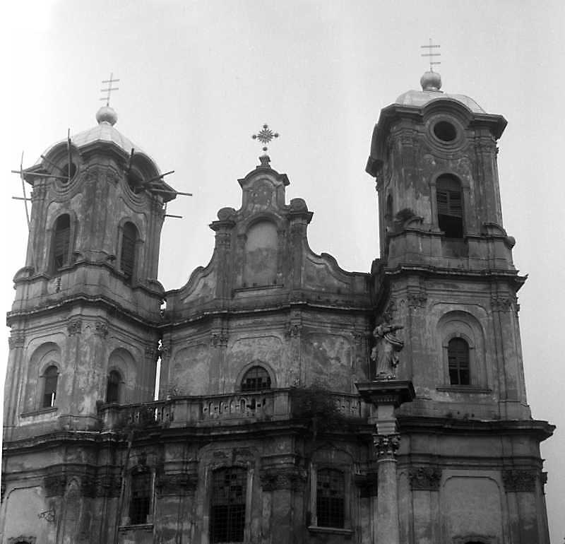 1992 р. Верхня частина головного фасаду. Вигляд з позиції С3Розмір зображення: 800:770 піксел 1992 р. 22 червня. Фото М.І.Жарких. Негатека, № 773-05+7. |