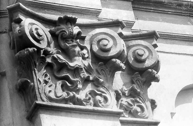 Ліпнина капітелі пілястри на південній стініРозмір зображення: 800:523 піксел 1996 р. 6 серпня. Фото М.І.Жарких. Негатека, № 900-37. |