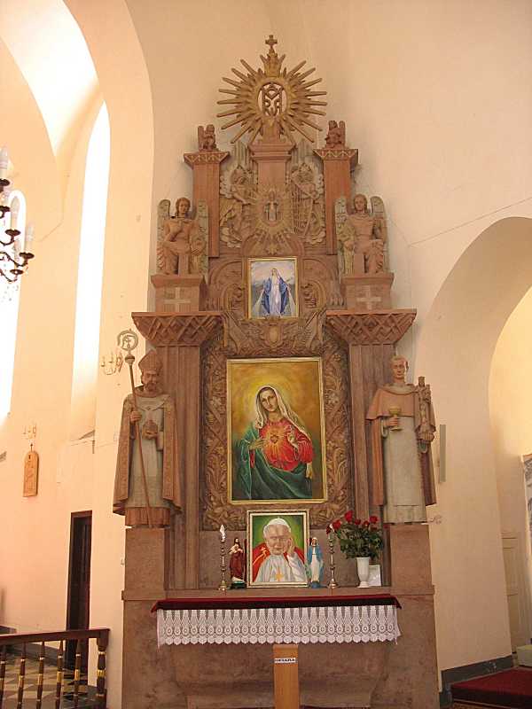 Правий бічний вівтар з іконою богородиціРозмір зображення: 600:800 піксел Фото Зенона Боровця і Богдана Тхора, 6 серпня 2011 р. |