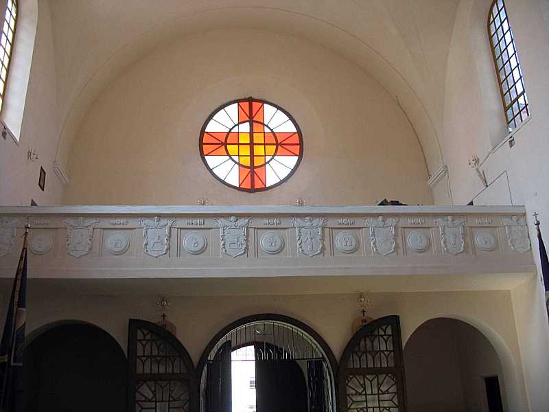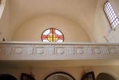 Інтер’єр з видом на хори Розмір зображення: 800:600 піксел Фото Зенона Боровця і Богдана Тхора, 6 серпня 2011 р. Вкладені елементи Інтер’єр з видом на хори Ліва частина парапету хорів Середня частина парапету хорів (2) Права частина парапету хорів