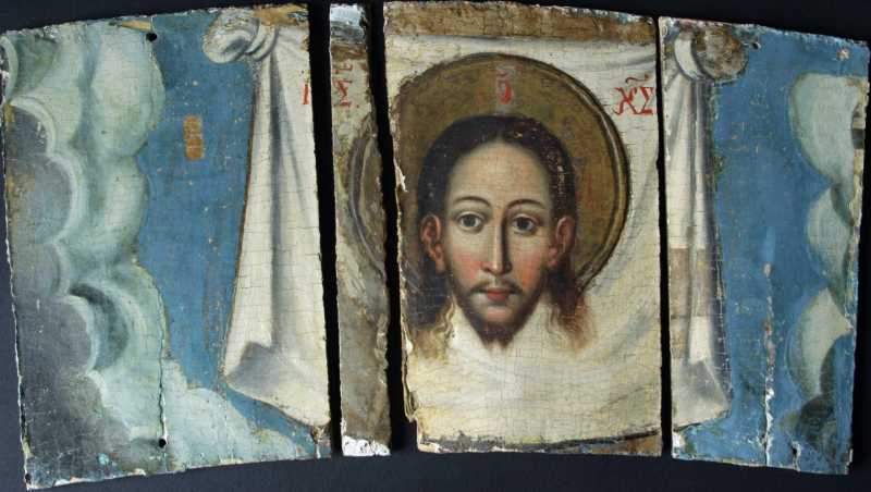 Вашій увазі образ Нерукотворного Спаса роботи відомого іконописця Йова Кондзелевича. Це зображення вміщене у внутрішню частину одвірків дияконських врат 1696 р. з Свято-Троїцької церкви с.Городище Луцького району. Бачимо високопрофесійне виконання образу Спасителя іменитим майстром, сповнене одухотвореністю і глибиною.