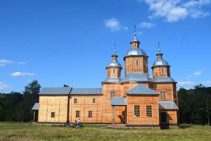 2020 р. Загальний вигляд з півдняРозмір зображення: 800:533 піксел Церква, відбудована у Музеї народної архітектури України в Пирогові (Київ) Фото Сарапулова 16 серпня 2020 р. з сайту |