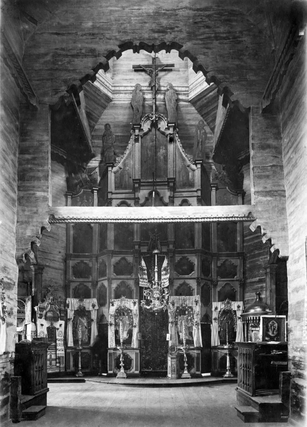 1920-і рр. (?) Інтер’єр з видом на вівтарРозмір зображення: 1200:1672 піксел Фото Стефана Таранушенка і Павла Жолтовського з експедиції Харківського музею українського мистецтва. 1920-і рр. (?) Опубліковано 25.12.2020 р. |
