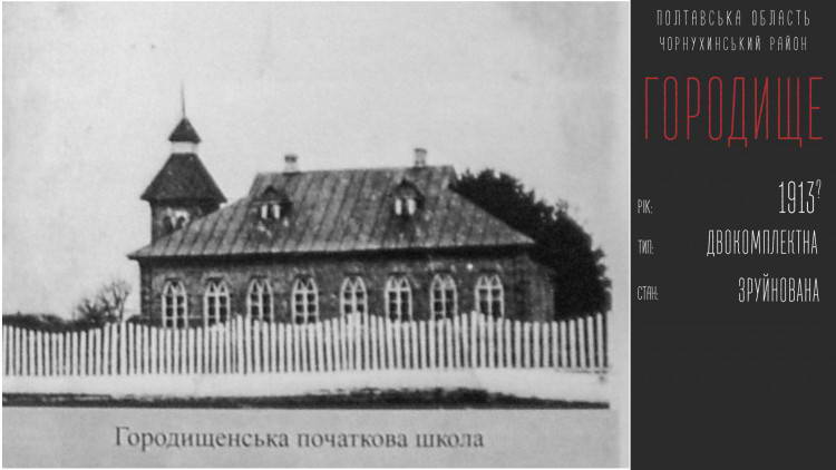 Школа побудована за типовим проектом у стилі української сецесії, розробленим Опанасом Григоровичем Сластьоном в 1909 р. на замовлення Лохвицького повітового земства. Дана школа збудована в 1912 (?) 1913 (?) р. Зруйнована за совітів.