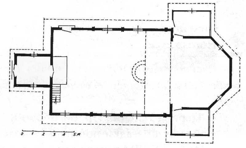 План церкви. Креслення Броніслава СенюкаРозмір зображення: 800:482 піксел Джерело: Слободян В. Церкви Холмської єпархії. – Львів: Наукове товариство ім. Шевченка, 2005 р., с. 159. |
