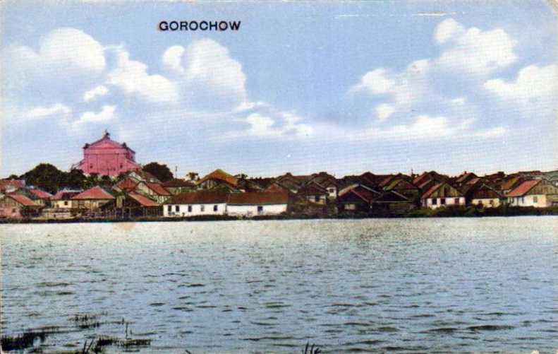 1930-і (?) рр. Панорама містечка з костеломРозмір зображення: 791:501 піксел Польська кольорова поштівка 1930-х (?) рр. з альбому «Дубенський форт-застава» |
