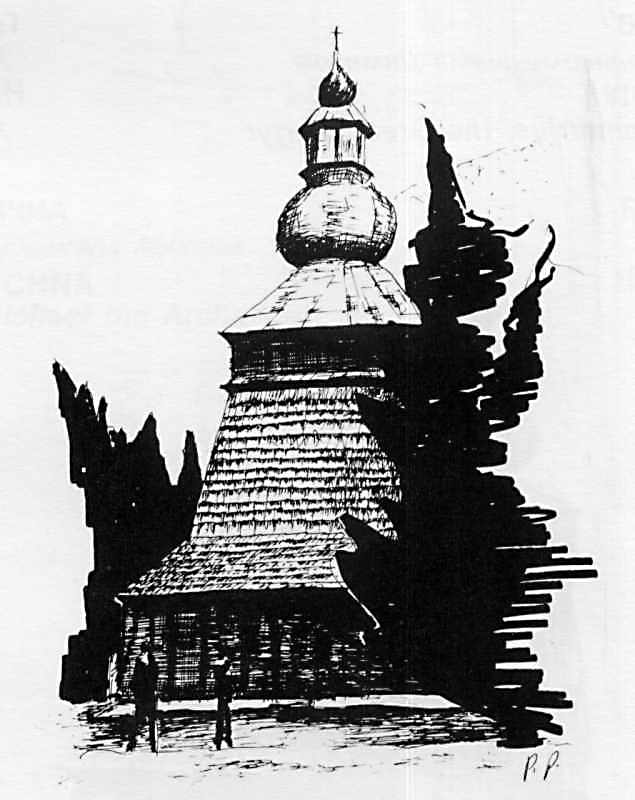 Загальний вигляд з позиції С3Розмір зображення: 635:800 піксел Граб Св. Козми і Дам’яна 1809 Дукля Рисунок Р.Раделицького. Церква зруйнована. Джерело: Іванусів О. Церква в руїні. – St. Catharines, 1987, с. 308. |