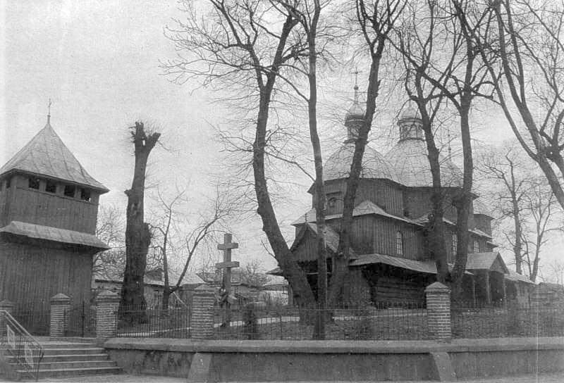 Попередня дерев’яна церква, яка користувалася привілеєм, наданим королевичем Костянтином [Собеським], на переломі XVII – XVIII ст., була збудована на місці давнішої у 1781 р. Відновлювалася у 1835 р. В 1889 р. замість неї побудовано новий дерев’яний тризрубний триверхий храм, увінчаний трьома шоломовими банями, над навою – більшою.
