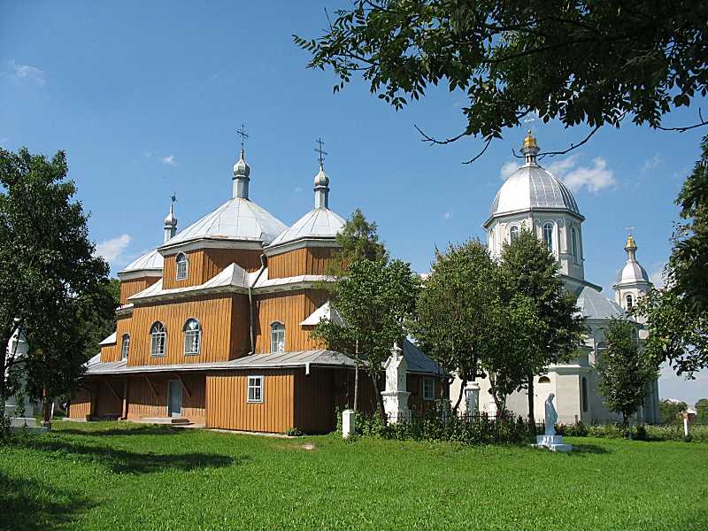 2008 р. Стара і нова церкви. Вигляд з позиції А2Розмір зображення: 800:600 піксел Фото Зенона Боровця і Богдана Тхора, 12 серпня 2008 р. |