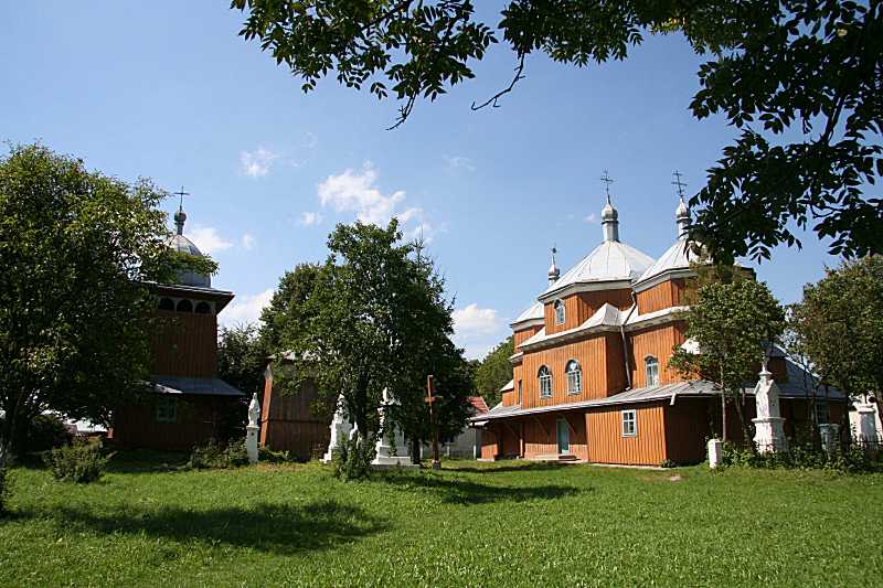 2008 р. Дзвіниця і церква. Вигляд з позиції А2Розмір зображення: 800:533 піксел Фото Зенона Боровця і Богдана Тхора, 12 серпня 2008 р. |