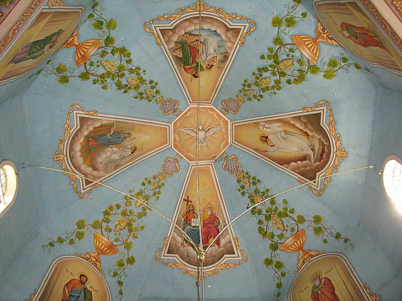 Інтер’єр куполаРозмір зображення: 800:600 піксел Ікони: «Благовіщення», «Хрещення», «Воскресіння», «Новозавітна трійця». Фото Зенона Боровця і Богдана Тхора, 12 серпня 2008 р. |