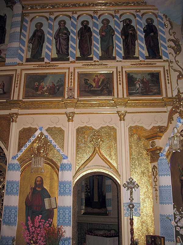 Права частина іконостасу Розмір зображення: 600:800 піксел Фото Зенона Боровця, 9 серпня 2008 р. Вкладені елементи Права частина апостольського і празникового рядів (+)