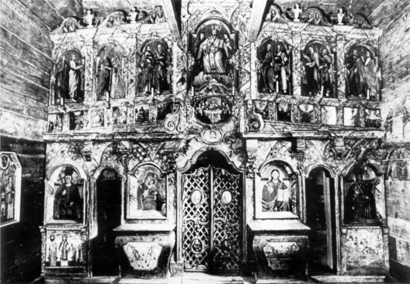 ІконостасРозмір зображення: 800:555 піксел Джерело: Titus D. Hewryk Masterpieces in wood: houses of worship in Ukraine. – New York, 1987, № 128. |