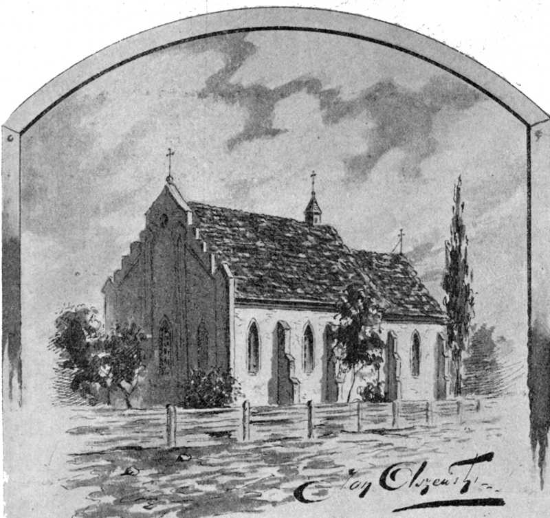 Костел Розмір зображення: 800:754 піксел Вкладені елементи [1900 р.] Загальний вигляд з позиції А3 Хрещальня 15 ст.
