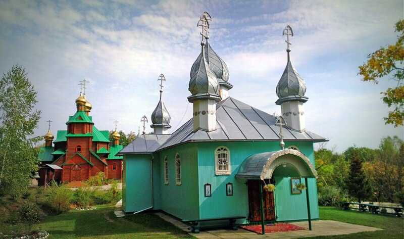 Скит св. СергіяРозмір зображення: 800:473 піксел Фото 1 жовтня 2012 р. з сайту Ліворуч, далі – церква св. Сергія Радонізького, праворуч, ближче – церква св. Ксенії Петербурзької. На фото – нові церкви, збудована за незалежності України. |