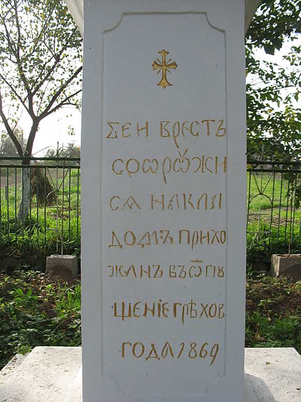 Напи: «Сей врест [!] сооружися накладом прихожан во отпущение грехов года 1869».