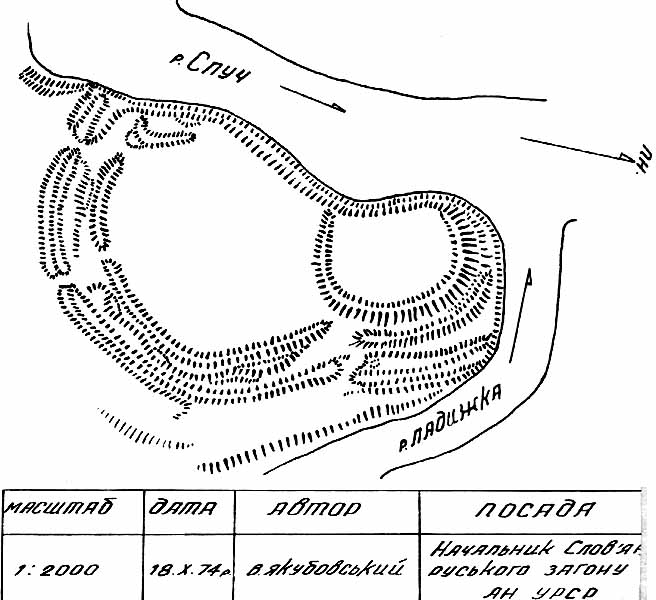 Городище знаходиться на 9 м вище рівня води р. Случ.