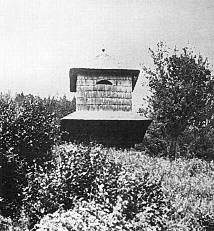 Веретичів. Дзвіниця XIX ст. Розібрана в 1954 р. Світлина Ф. Заплетала 1921 p. (P. R. Magocsi, F. Zapletal. Holzkirchen in den Karpaten. Wien. 1982.) Джерело: Сирохман М. Церкви України: Закарпаття. – Льв.: 2000 р., с. 327.