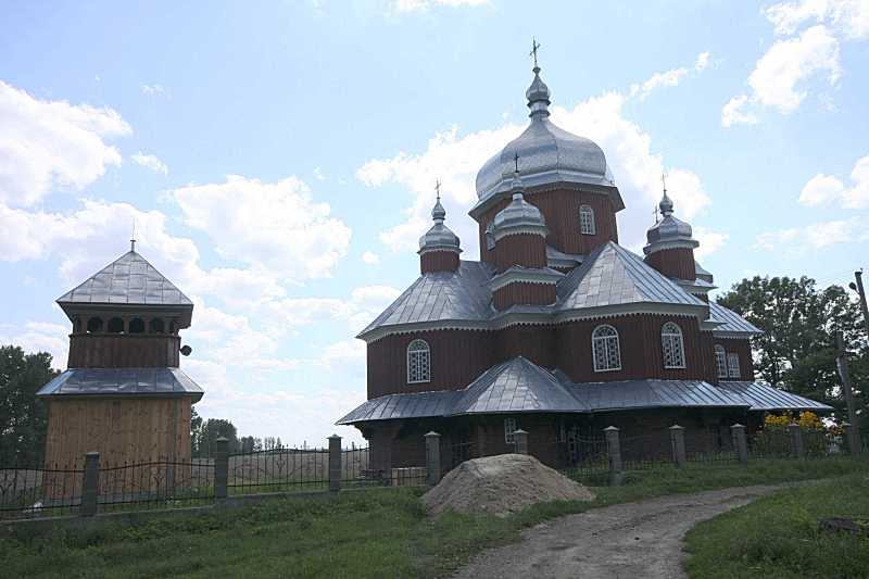 2011 р. Дзвіниця і церква. Вигляд з позиції А1Розмір зображення: 800:533 піксел Фото Зенона Боровця і Богдана Тхора, 5 серпня 2011 р. |