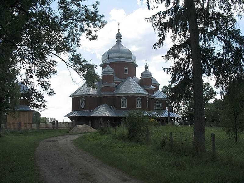 Дзвіниця і церква. Вигляд з позиції А1Розмір зображення: 800:600 піксел Фото Зенона Боровця і Богдана Тхора, 5 серпня 2011 р. |