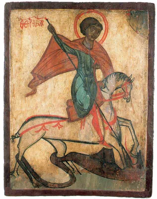 Св.Георгій з драконом. ІконаРозмір зображення: 633:800 піксел Ікона “Святий Юрій з драконом” XVII століття, яка знаходиться в збірках Шариського музею в Бардієві. |