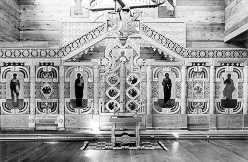 Іконостас. 1963 – 1964 рр. Проект та різьблення – Михайло Черешньовський. Ікони – Петро Холодний мол.
