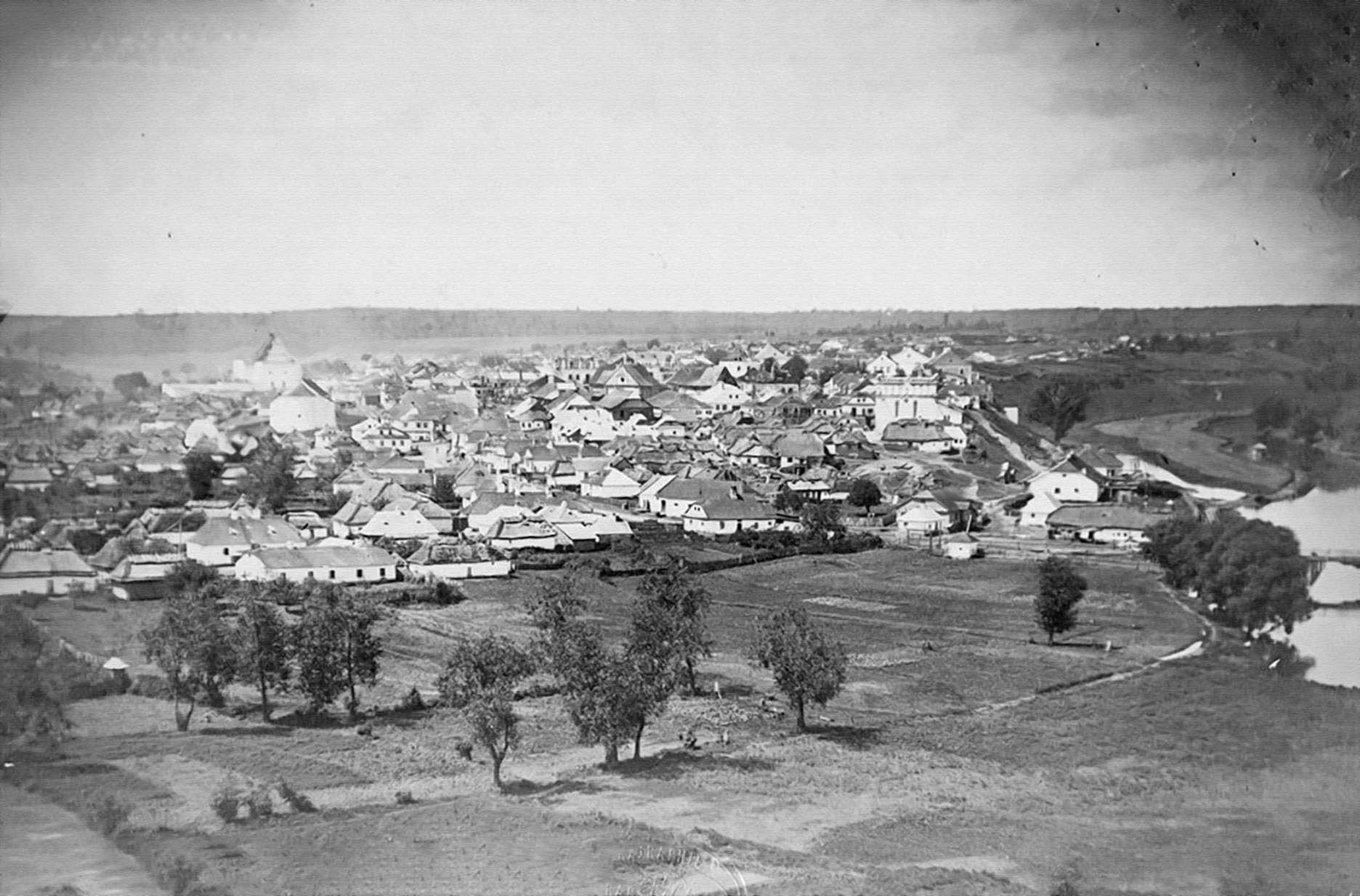 Це вид галицької частини містечка з високого ліворо (російського) берега Збруча.