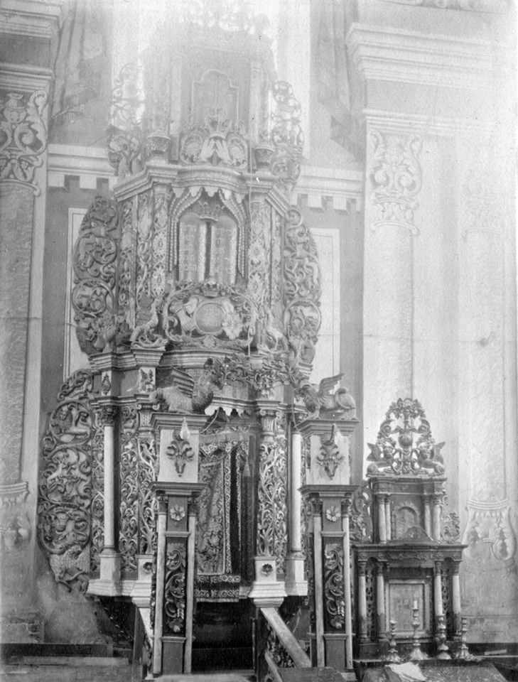 Вівтар (арон-койдеш) у синагозіРозмір зображення: 729:960 піксел Фото Стефана Таранушенка і Павла Жолтовського з експедиції Харківського музею українського мистецтва. 1920-і рр. (?) Опубліковано 9.08.2019 р. |
